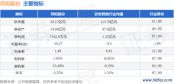 民和股份2025年一季报显示,公司主营收入4.68亿元,同比下降10.5%;归母净利润-7102.9万元,同比下降103.48%;扣非净利润-7354.9万元,同比下降102.02%;负债率48.44%,投资收益-564.04万元,财务费用1036.88万元,毛利率1.95%。民和股份(002234)主营业务:父母代肉种鸡的饲养、商品代肉雏鸡的生产与销售;商品代肉鸡的饲养与屠宰加工;鸡肉制品的生产与销售;有机废弃物资源化开发利用。