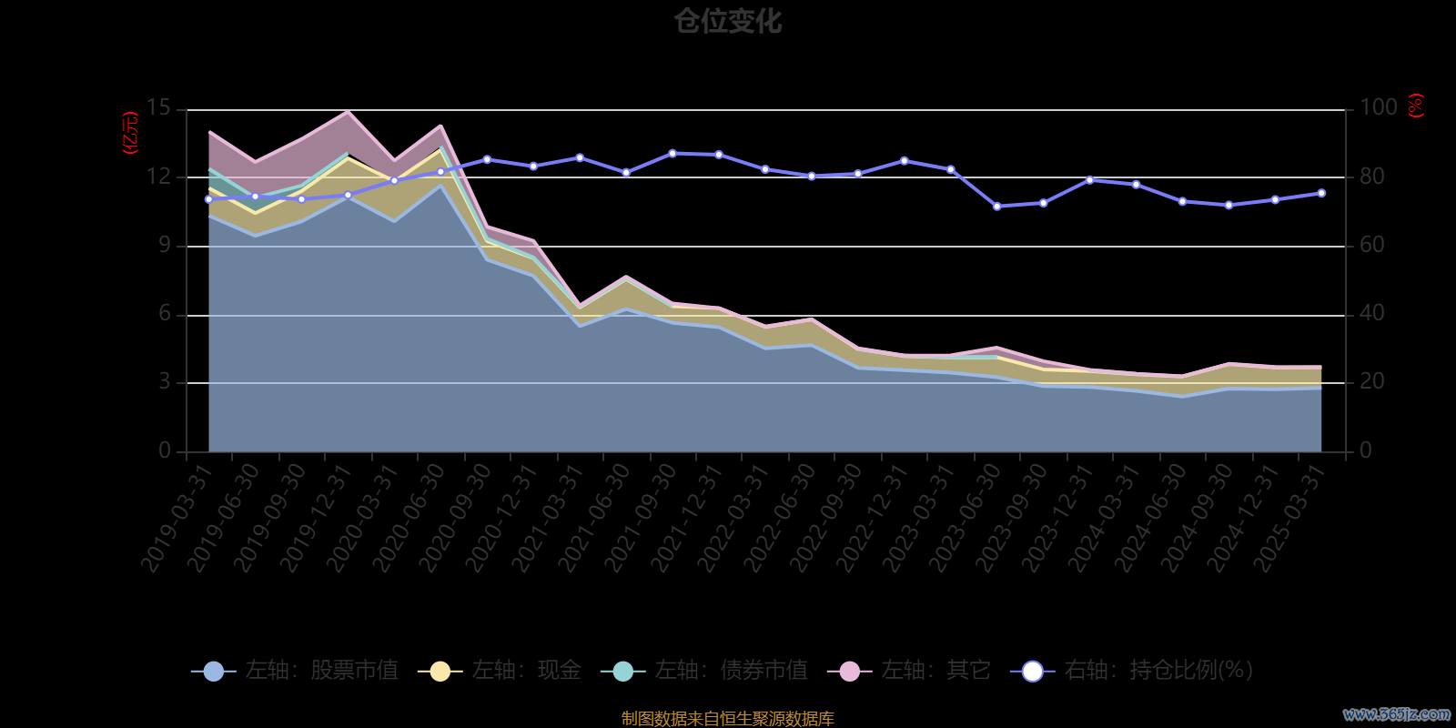据定期报告数据统计,近三年平均股票仓位为77.06%,同类平均为80.16%。2021年三季度末基金达到87.09%的最高仓位,2023年上半年末最低,为71.64%。